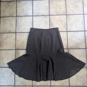 A super cute mermaid flare midi/mini skirt. Can be worn high or low rise. Brand is Nine West, never worn. Size is small, definitely a great choice for petite or smaller women. Very rich chocolate brown, double lined.