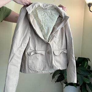cream button-up, fitted jacket, Y2K fashion, 2000s style, vintage outerwear, casual blazer, minimalist, neutral tone, slim fit, retro coat