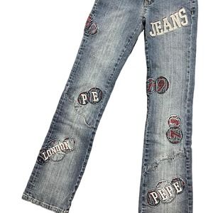 Y2K Patch Pepe Jeans with Number Patches and Pepe Jean Logo