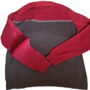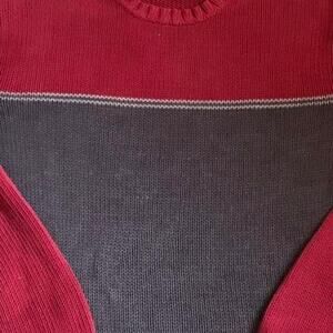 red, grey, oversized, knit, retro, winterwear, colorblock, sweatshirt, casual, vintage