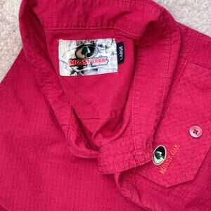 Y2K Red Waffle Textured Mossy Oak Short Sleeve Collared Button Up Shirt