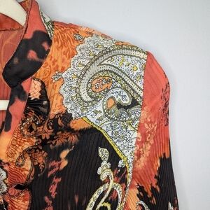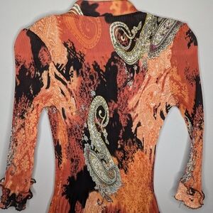 Y2k ruffled Renaissance abstract pattern long sleeve button up shirt womens XS