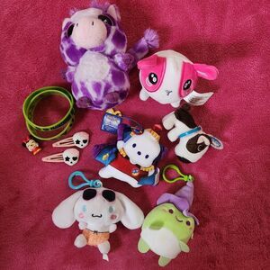 ♡2 scenecore hot topic bracelets, 2 skull barrettes ✿Yu-Gi-Oh Mcdonalds pochacco plush