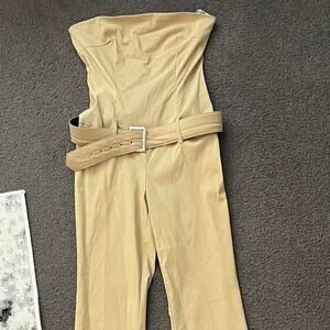 Y2K Strapless Belted Flare Full Body Jumpsuit Romper