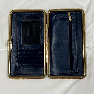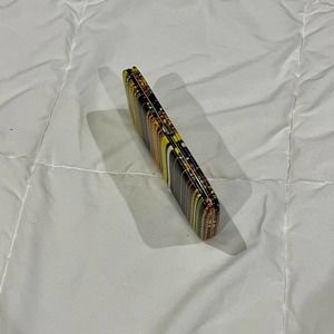 Shiny vinyl neon striped wallet. Black, yellow, white, pink, and orange colors. Metal clasp closure. Zipper coin pocket, ID section, and multiple card sections. Purchased at Urban Outfitters in the 2000s. Barely used.