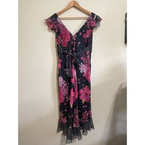Y2k style flutter sleeve ruffle polka dot floral dress size 12 Lorelai Gilmore