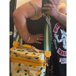 Juicy couture - juicy love p & g(pam & gela orignal/ og’s love g & p ) crossbody vtg vintage y2k lemon/fruit/yellow cherry cherries crossbody lunch bag cooler pillbox - insulated w/removable cloth crossbody/shoulder strap/belt