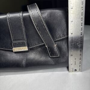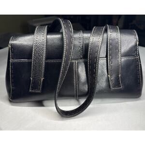 Classic Y2K Fossil black leather shoulder bag with gorgeous contrast stitching and the iconic early-2000s Fossil key-print lining. This vintage Fossil bag features durable genuine leather, a structured shape, and plenty of interior organization — perfect for everyday use or for collectors of Fossil’s early designs.