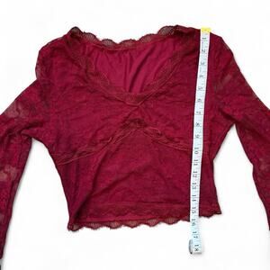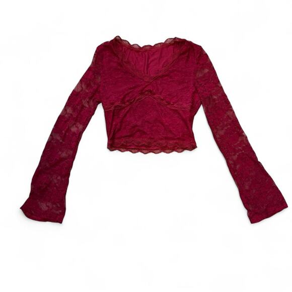 Y2K whimsigoth fairy maroon cropped long bell sleeve lined top