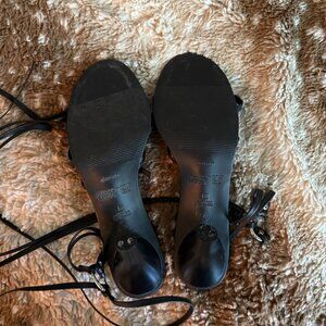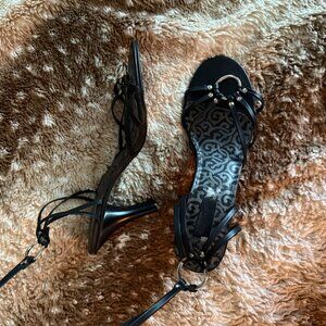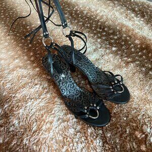 Y2k/90s vintage fioni US 8 strappy Black mitten stiletto Heels w/ silver Rings