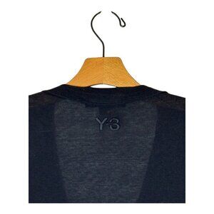 Y-3 Yohji Yamamoto Adidas collab sweater for women in small size. Crafted from a blend of cotton and wool, this black duster cardigan boasts a sleek, solid pattern in a lightweight knit fabric