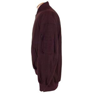Long sleeve insulated plain-woven cotton-blend bomber jacket in burgundy.