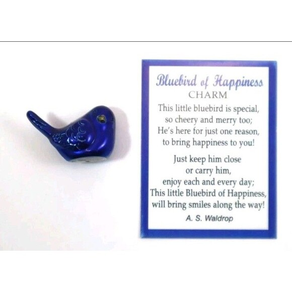 The Y5 Bluebird of Happiness pocket charm by GANZ is a small, metal figurine depicting a blue bird, perfect for any occasion. The charm does not require additional parts and comes unboxed. This decorative collectible is a charming addition to any collection or as a personal ornament to carry in your pocket for added positivity and happiness.