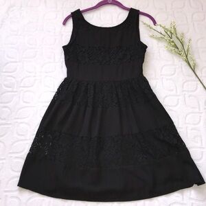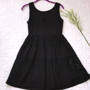 Ya Los Angeles Black Dress. Lace detail throughout. Zipper closure on side. Lined. Excellent pre-owned condition. Size Small.