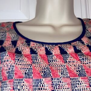 YA LOS ANGELES Pink and Blue Midi Over the Knee Dress Blue Hem Sleeveless Medium