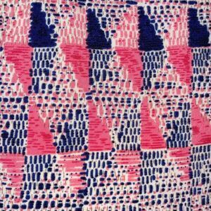 Mediterranean Geometric pattern in Shades of Pink and Navy Blue with a Matching Solid Navy Blue Hem at the Bottom