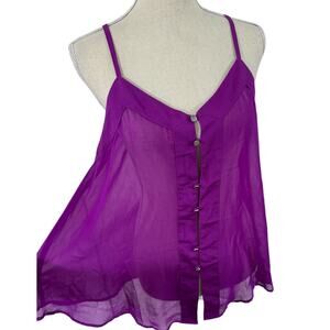 This beautiful tank top from YA Los Angeles is perfect for any occasion. The sheer material adds a touch of whimsy and the purple color is sure to turn heads. The spaghetti straps provide a comfortable fit and the fairy theme is perfect for those who love all things romantic and sexy. The tank top is available in size M and is perfect for regular sized women. The brand is known for its quality and this top is no exception. Whether you're looking to add a touch of magic to your wardrobe or just want to feel confident and stylish, this tank top is the perfect choice. 28" T x 20" w