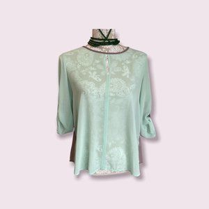 Beautiful light sheer top with adjustable sleeves done with button straps give this versatility.