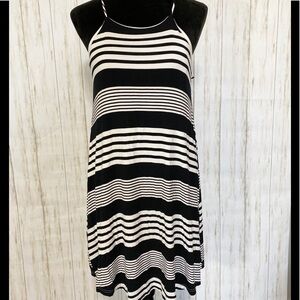 Ya Los Angeles spaghetti strap black and white striped dress. Size Medium. 60% cotton, 40% rayon. Lining 100% polyester. Excellent condition.