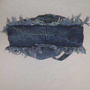 YAALI Denim Distressed Frayed Shoulder Tote Bag