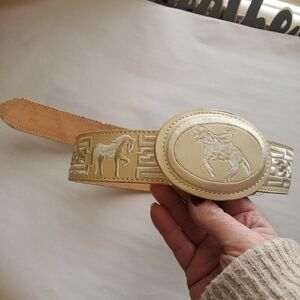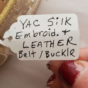YAC SILK EMBROIDERY LEATHER NWT. Belt and buckle. Beige sz 38 unisex