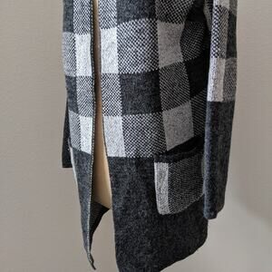 YAIRA EUC Checkered Plaid Black Grey Long Open Front Cardigan Jacket Knit Sweater Plaid Womens Medium