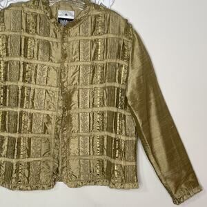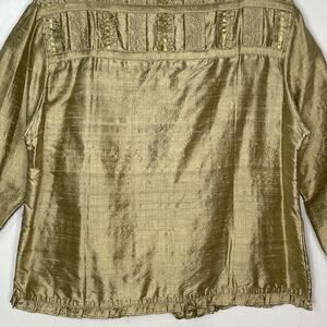 YAK MAGIK Jacket size MEDIUM 100% SILK Long Sleeves Open Front Beaded GOLD Vintage