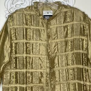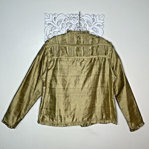 YAK MAGIK Jacket size MEDIUM 100% SILK Long Sleeves Open Front Beaded GOLD Rare