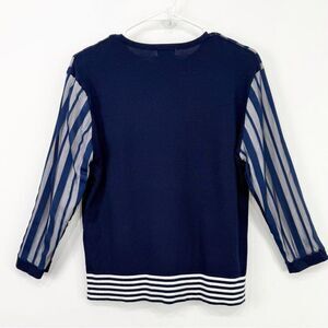 YAL NY Navy Blue White Mesh Overlay Striped Knit Nautical Pullover Top