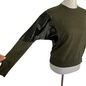 YAL New York Sweater Small Green Faux Leather Pullover Edgy Streetwear
