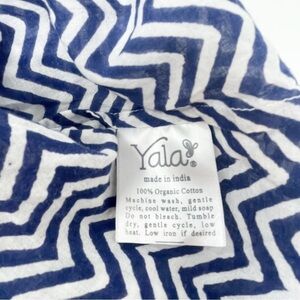 YALA Women’s Blue Zig Zag Stripe Organic Cotton Tunic Top Embroidered Size Small. Good pre-owned condition. Gentle signs of wear. No stains, holes or snags. All measurements are approximate.