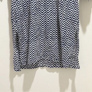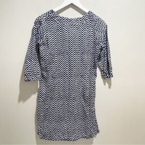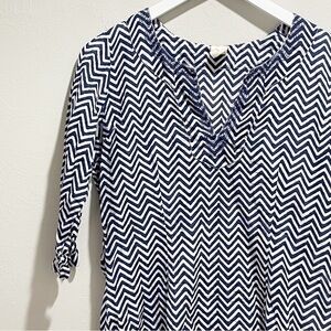 YALA Women’s Blue Zig Zag Stripe Organic Cotton Tunic Top Embroidered Size Small