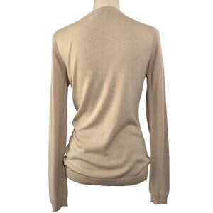 YAL Cardigan Snap Front Sweater Lightweight Abstract Print Tan Size Large