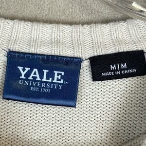 YALE Sweater Mens M White Knit Long Sleeve Crew Neck Yale University Logo