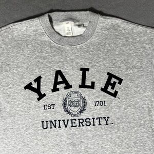 Rep Ivy League style in comfort with this YALE University sweatshirt from H&M. Made from a soft cotton blend, this cozy gray pullover features the official Yale crest and bold collegiate lettering across the chest. Designed with an oversized fit and a relaxed silhouette—perfect for lounging, layering, or repping your favorite university in style.