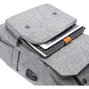 YALUNDISI Vintage Backpack Travel grey Laptop bag with USB Charging Port.