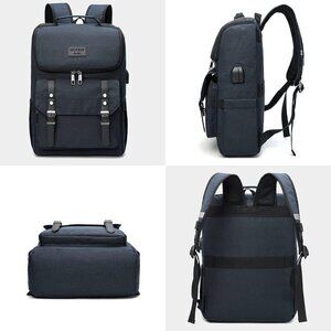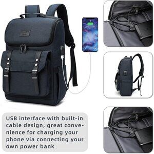 YALUNDISI Vintage Backpack Travel navy blue Laptop bag with USB Charging Port.