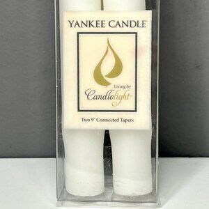 YANKEE CANDLE Living By Candlelight White Two 9" Connected Taper Candles - NEW