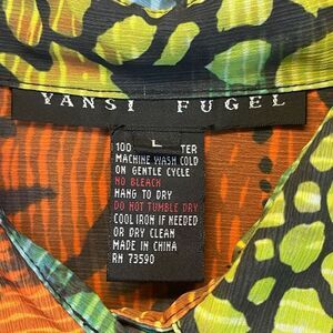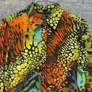 YANSI FUGEL Top Women's Large Black Orange Animal Print Button Down 3/4 Sleeve
