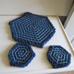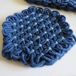 YARN TRIVET & 2 COASTER PLACE Vintage Yarn 1980s (set of 3 total)
