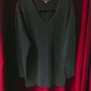 Womens Black Stripped V- Neck Sweater.