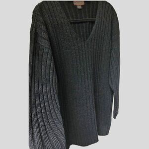 YARNWORKS Women's Oversized BlackโV- Neck Sweater