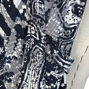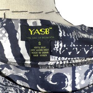YASB Multicolor Abstract 100% Silk 3/4 Sleeve Tie Back Blouse Top Size Small
