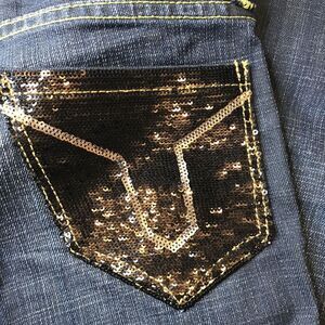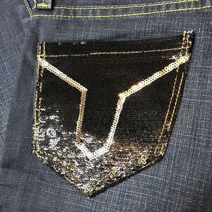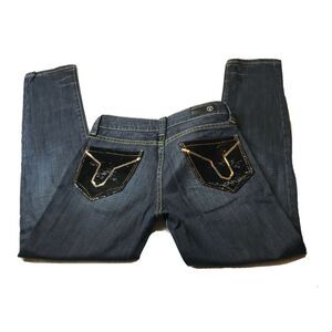 YASO Womens Jeans JR Sz 3/4 27 Dark Wash Bling Embellished Stretch Distressed