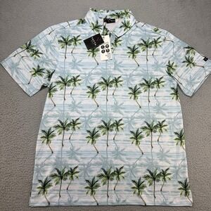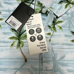 YATTA GOLF Polo Shirt Men's Extra Large Blue Green Palm Tree Tropical Floral AOP