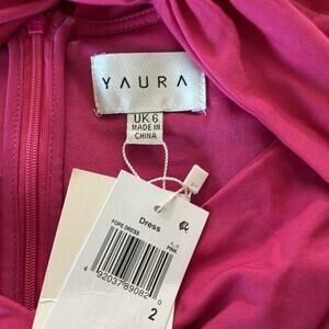 YAURA Fope Twist Front Cutout Dress Hot Pink Ruched Bodycon Club NEW UK 6 US 2
