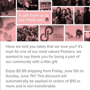 Grab it up now with the awesome discount posh is giving me!! Make an offer - they won't be here long!!