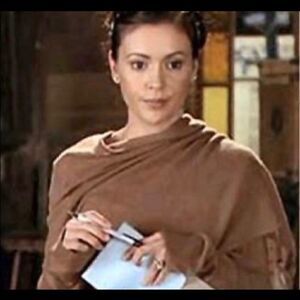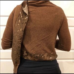 YA-YA CASHMERE SEQUIN BROWN WRAP CARDIGAN SWEATER S