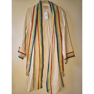 YAZD Tie Robe Size S/M Cream Rainbow Toweling Lounging Luxury Mid Length Soft
