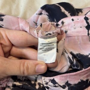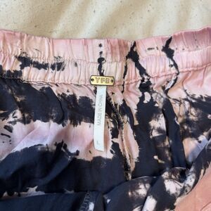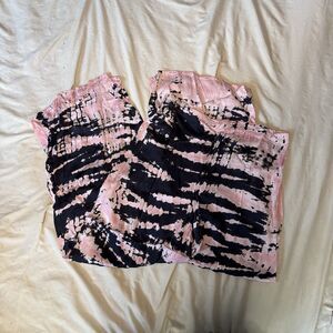 YBF Pink & Black Tie Dye Large Satin Pants Wide Leg Flowy Young Broke Fabulous